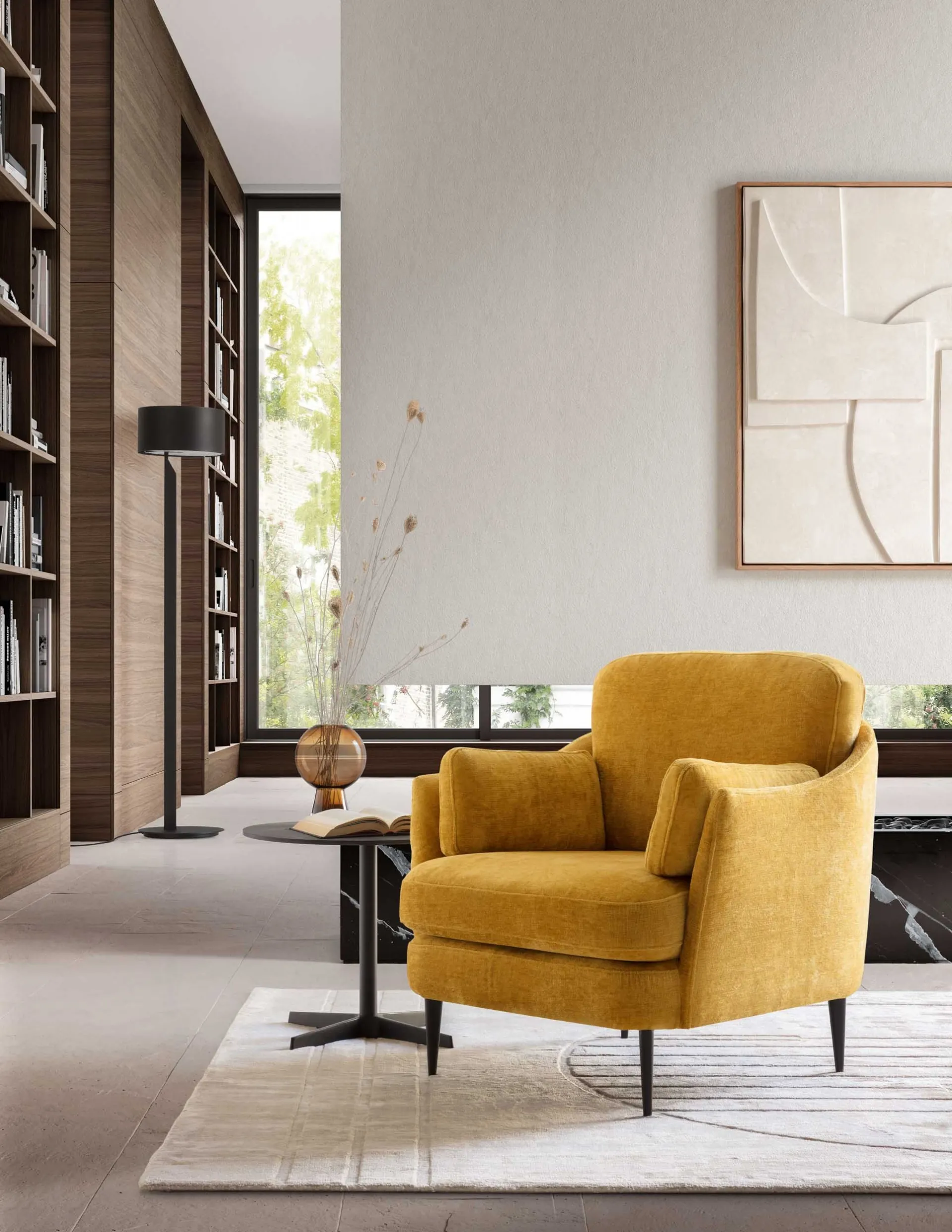 Galen armchair by Le Comfort: all products of the brand are synonymous with durability over the years, quality of materials and coverings, strong lines and a unique style. If you are looking for a fabric model, discover now a wide range of solutions with great design. Completing the atmosphere of your home is not easy: Armchairs come to our rescue. A rich catalog of modern Armchairs awaits you in store. In the image you can see the Galen armchair by Le Comfort, a specialist in the production of upholstered furniture for the living room and other rooms of the house.