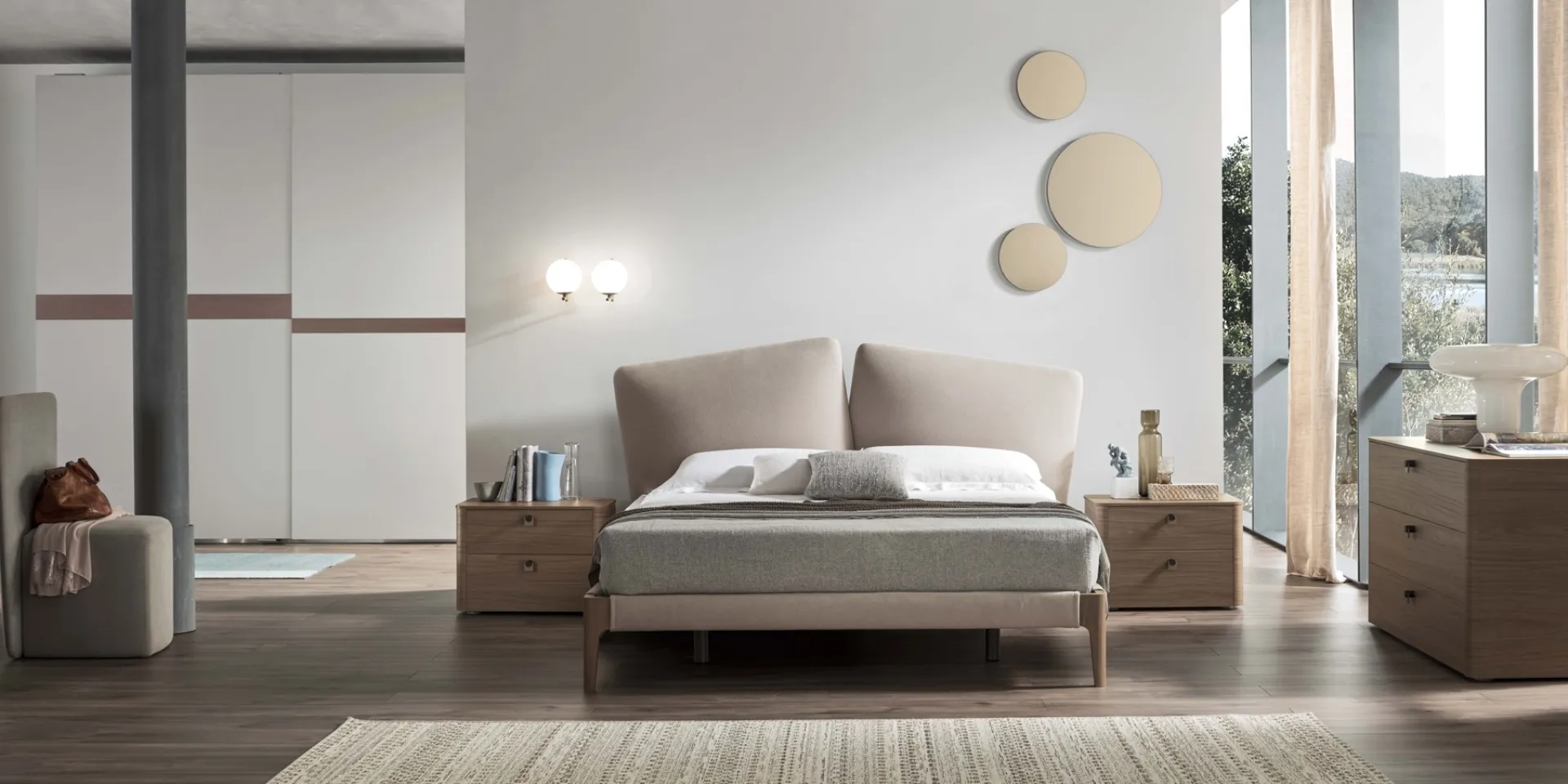 If you want to ensure total comfort in your moments of relaxation, choose fabric design double beds like the model shown in the photo. On our website, you can find the most valid solutions from the best manufacturers specialized in bedroom furniture, with a wide range of customization options in terms of colors, pairings, accessories, and much more. The bedroom is the area of the house that best reflects the soul of those who inhabit it, the inner space dedicated to rest, relaxation, and privacy. Discover a wide range of upholstered beds from the best Furniture Home manufacturers available in-store and enhance your sleeping area. The Love upholstered headboard bed by Maronese Acf is one of the most beautiful solutions of the brand, a specialist in rest, capable of guaranteeing functionality, comfort, and a unique style.