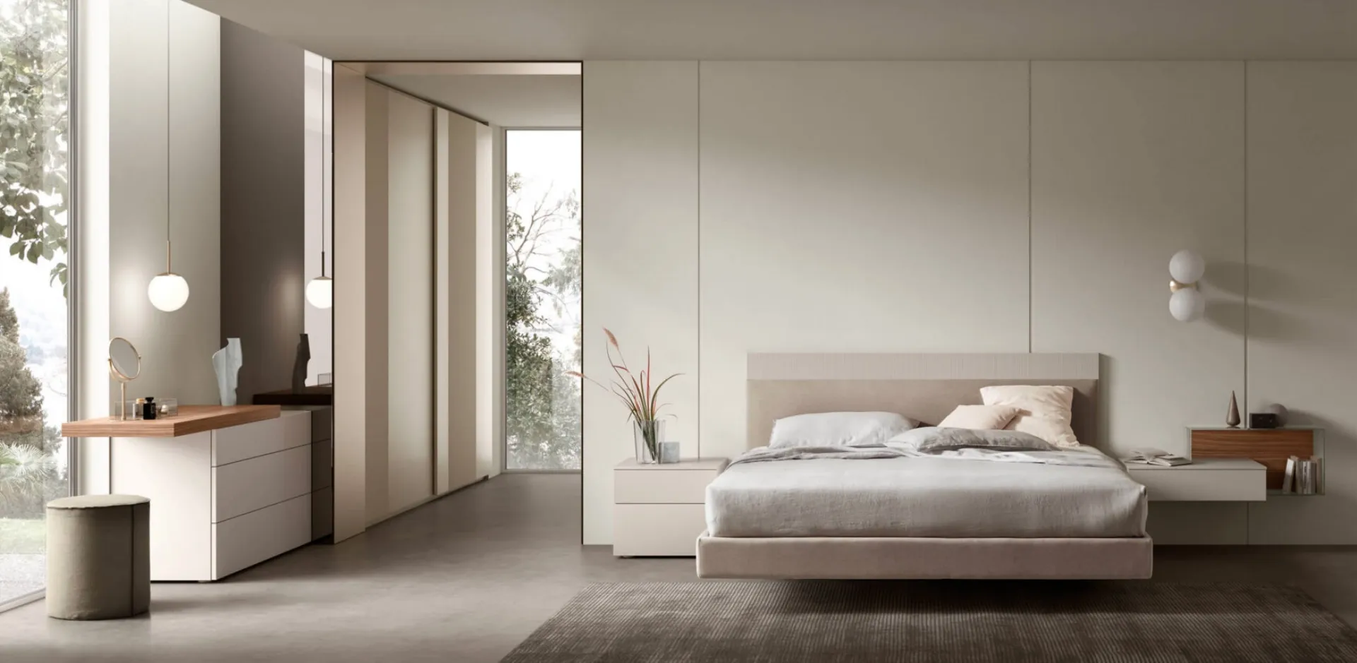 With our modern night groups from the Maronese brand, a leader in home furnishings for the bedroom, you can recreate the bedroom you've always dreamed of. Optimize your space by choosing compositions of matched pieces or create aesthetically pleasing combinations of style and colors with the catalog of furniture and accessories for the bedroom that we offer, like the matte lacquered model shown in the photo, also customizable. Maronese's Seta Group: contact us and get information about our furnishing solutions and furnish the bedroom as you imagined.