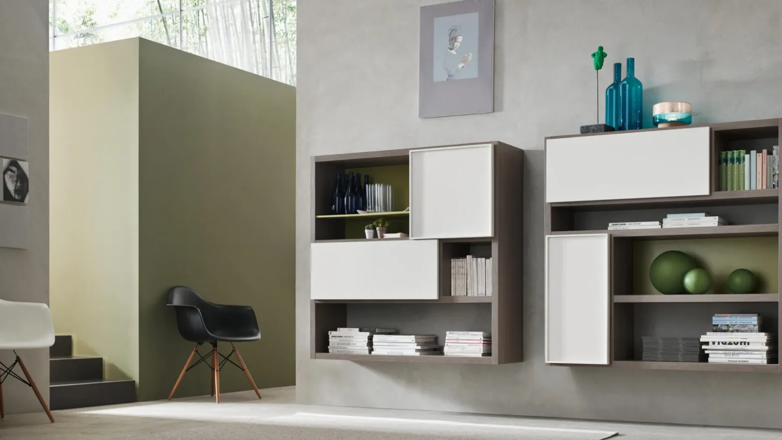 The suspended silk bookcase by Maronese, shown in the melamine variant, is truly versatile and functional, sturdy and durable, and can be customized according to the most specific housing needs. Maronese suspended bookcases are available in different configurations: at an angle, in line, suspended, and can be custom made with various components, shelves, and compartments. Modern bookcases are always highly appreciated for organizing the living room and walls, combining practicality and design. The living room is, par excellence, the area of the house where one relaxes every day, chatting with friends and family, resting in solitude, and watching television.