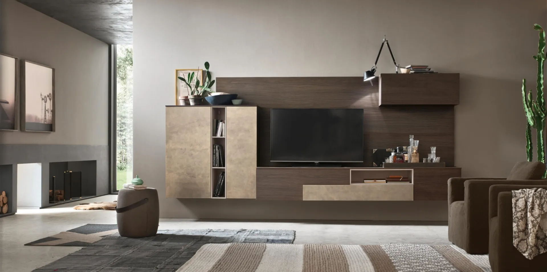 For information and quotes on the Maronese Seta Comp SA2218 Wall Unit in the photo, contact us! The proposed model is made of melamine, but thanks to a wide variety of textures, tones, and shapes, it can adapt to any style. This wall unit is one of the solutions offered by the company and will allow you to furnish the living room according to your specific housing needs. Through a dynamic play of combinations between open shelving or closed compartments, modern wall units furnish the living room effectively utilizing every space.