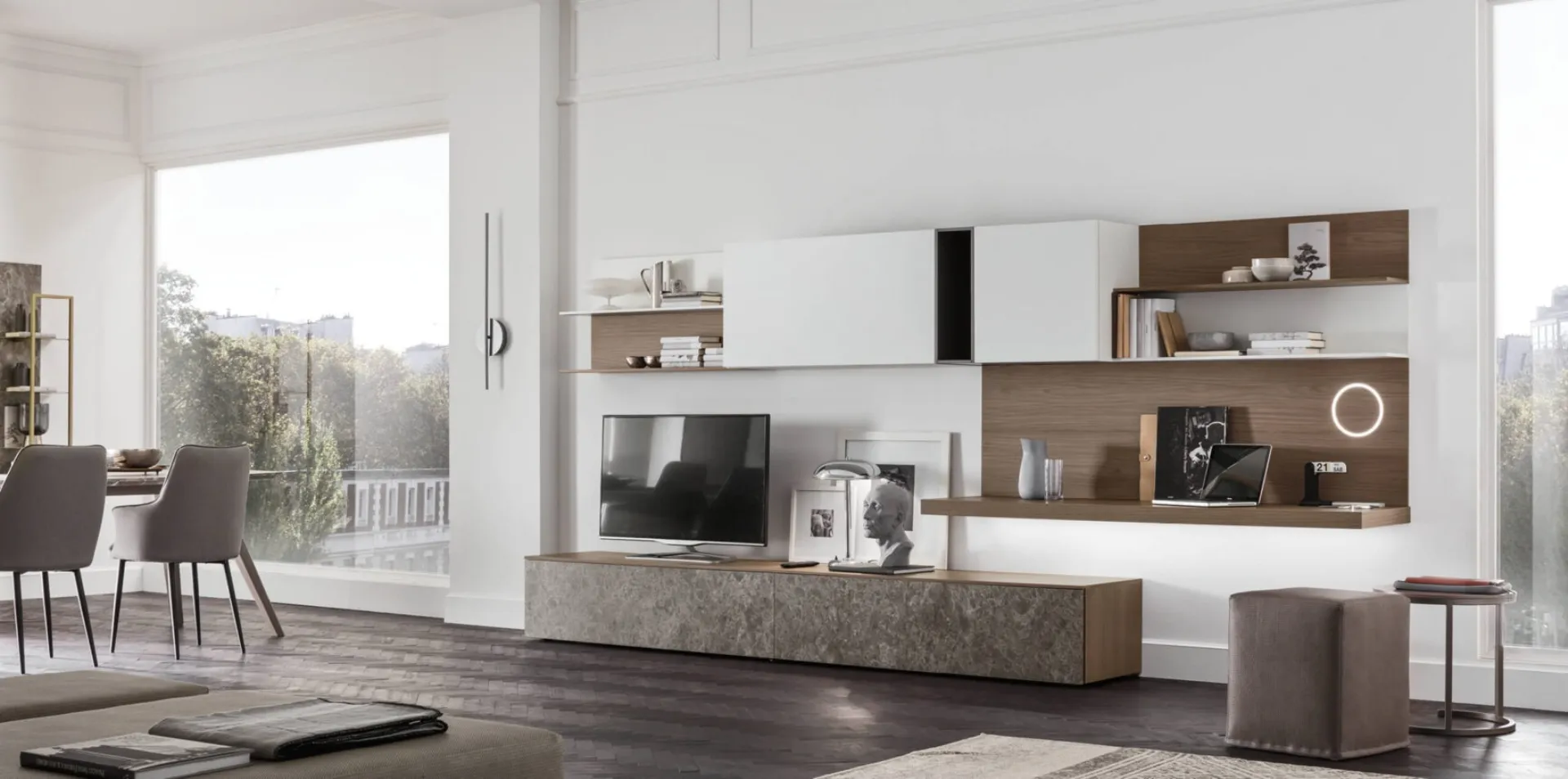 To meet the diverse housing needs of each individual, the brand offers its customers a rich catalog of modern Wall Units that are extremely functional and characterized by a refined aesthetic. The Silk Equipped Wall Unit SA2230 by Maronese in the image is highly modular and offers different customization options: discover the equipped wall unit available here and contact us for more information and quotes. Whether mounted on the wall or placed in the center of a room to optimize an open space, the most beautiful furniture compositions on the market decorate the living area while optimizing the available space.