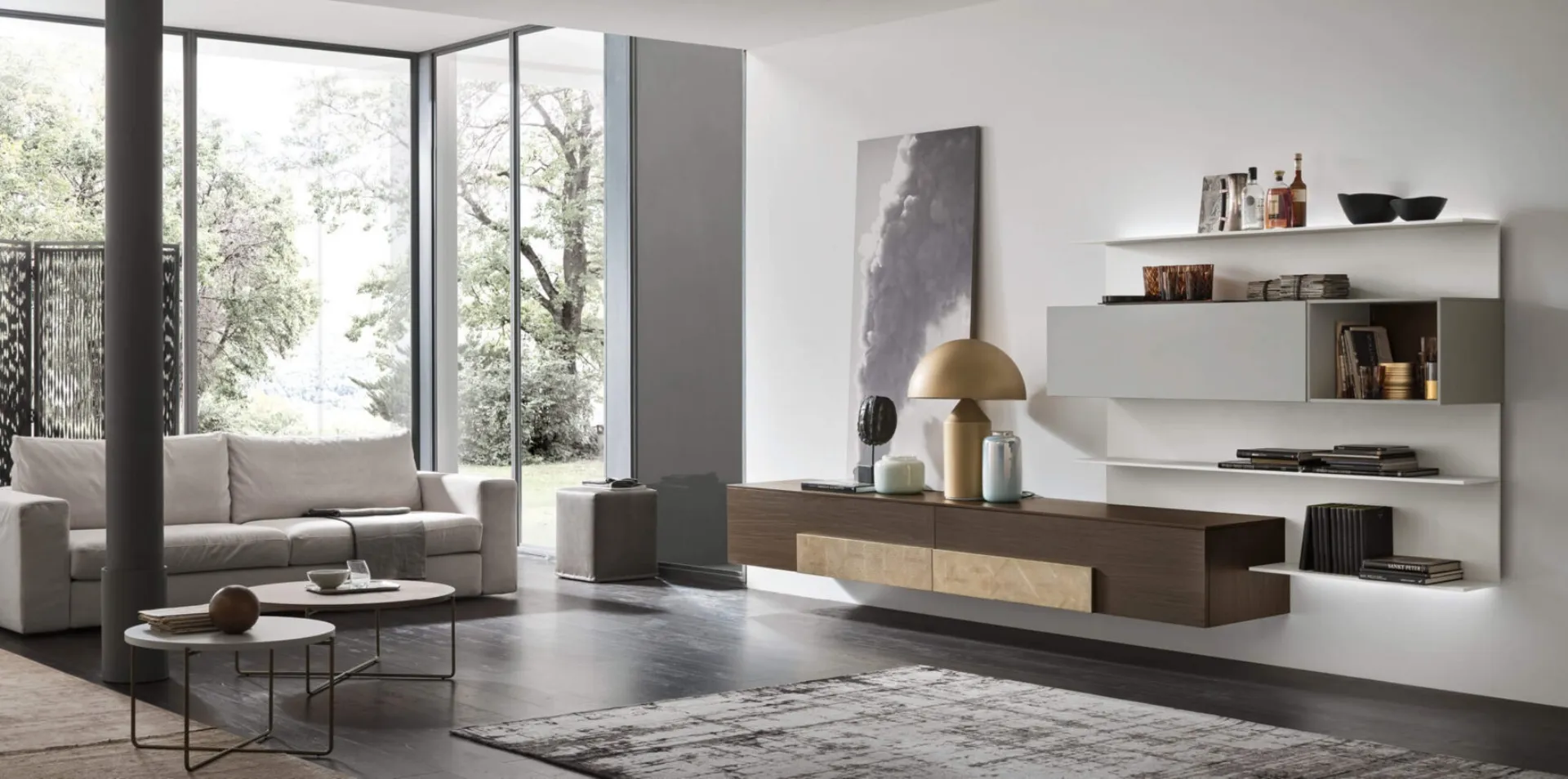 Modern fitted walls give the possibility to recreate different atmospheres in the living room, freeing up space and making the most of every corner. We are retailers of home furniture in melamine from the best manufacturers: contact us and get information! Studying the most current and personal housing needs, we select only the most exclusive and interesting furnishing solutions on the market, customizable according to the most personal requests. The Seta Comp SU2120 Wall Unit by Maronese becomes the protagonist in rooms of all kinds thanks to its modular accessories and the possibility to combine textures, materials, tones, shapes, and much more.