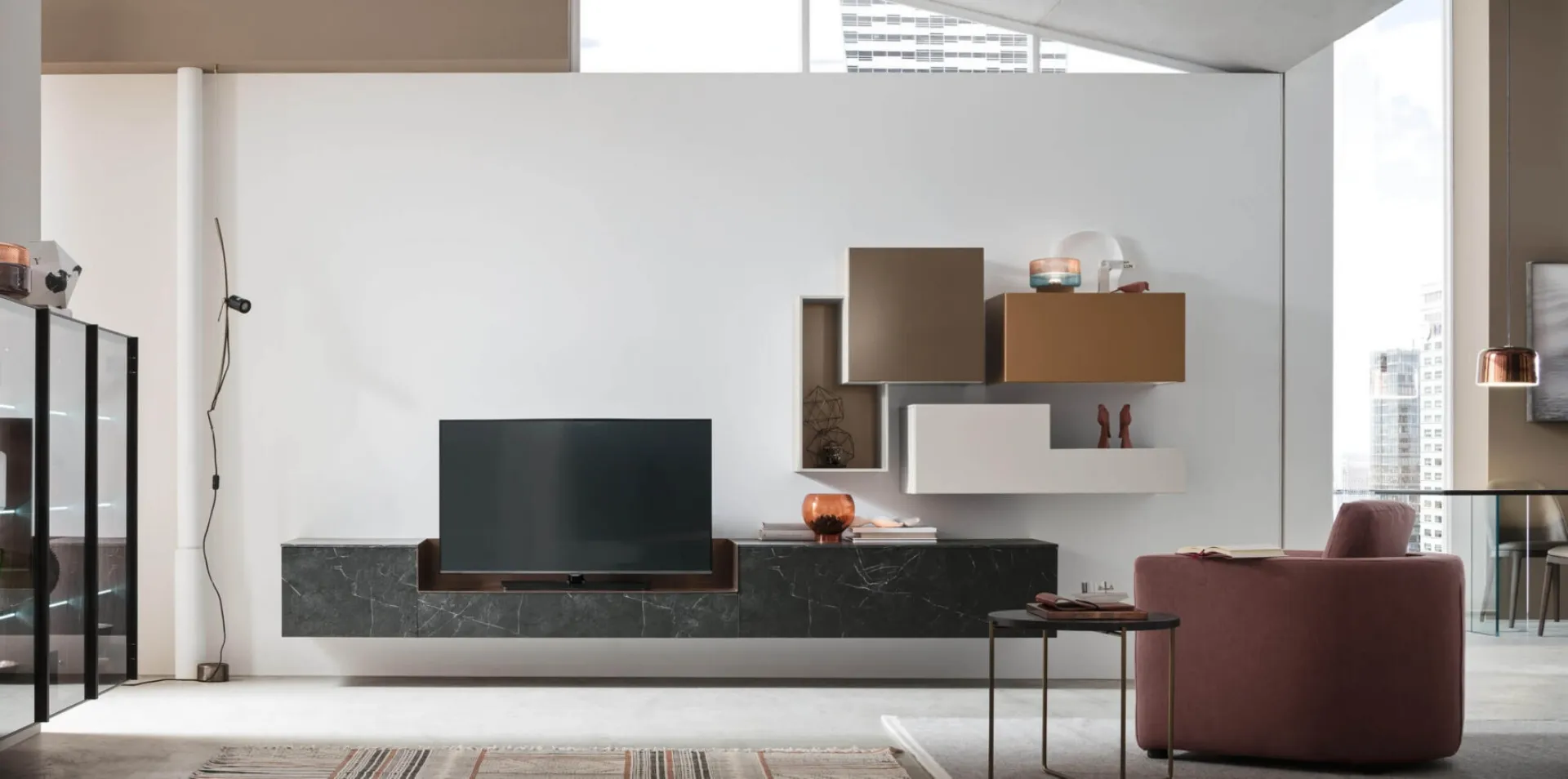 The Maronese Seta Comp SU2201 Wall Unit in the photograph has customizable modularity and various possibilities for customization: discover the wall unit available here and contact us for more information and quotes. Enhance your interiors with Maronese's modern Wall Units: in our store you will find furniture and designer accessories, made from durable materials and the best brands. To meet the diverse housing needs of everyone, the brand offers its customers a wide range of highly functional and aesthetically refined modern Wall Units.