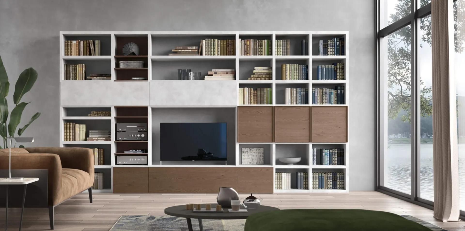 The Maronese SA2222 Comp Shoulder System Wall Unit in the image has high modularity and various customization options: discover the wall unit visible here and contact us for more information and quotes. Add value to your interiors with modern Wall Units by Maronese: in our showroom you will find furniture and design accessories, made of quality materials from the best manufacturers. To meet the diverse housing needs of everyone, the brand offers its customers a rich catalog of modern and highly functional Wall Units characterized by a touch of style.