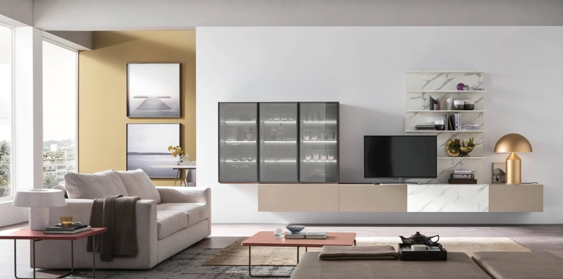 Wall-mounted or freestanding to best organize an open space, the most original furniture compositions on the market decorate the living room enhancing the available space. The Unix-Comp-SU2108 Maronese Wall Unit in the photograph offers customizable modularity and different possibilities for customization: discover the wall unit shown here and contact us for more information and quotes. To meet the diverse housing needs of everyone, the brand offers its customers a wide range of modern and functional Wall Units characterized by a touch of style.