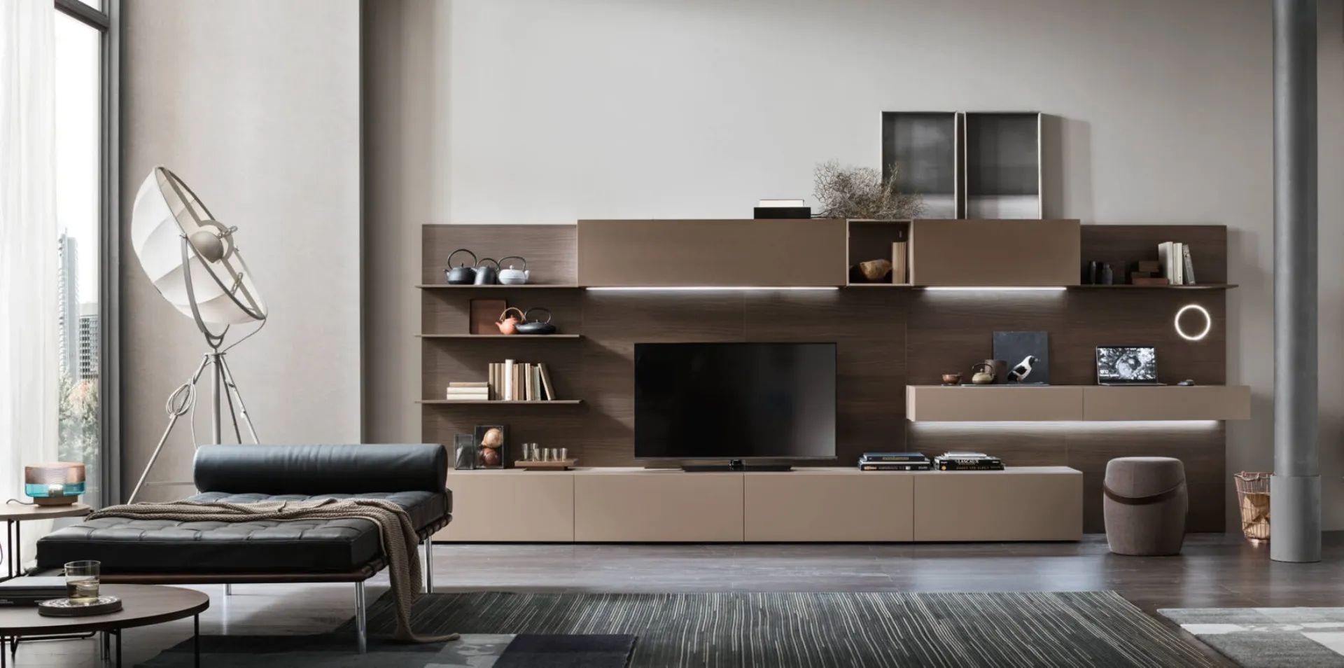 This proposal represents all the excellence that the brand ensures thanks to years of experience and great passion in the furniture and design sector. Even in a small living room, this type of furniture manages to optimize spaces by maximizing every corner and guaranteeing tailor-made modularity typical of modern solutions. A bit of bookshelves, a bit of storage furniture and showcases: Wall Units are ideal for arranging a practical and operational space. If you are looking for space-saving furnishings and custom-made solutions, contact us and get information on the best brands' Home Furnishing.