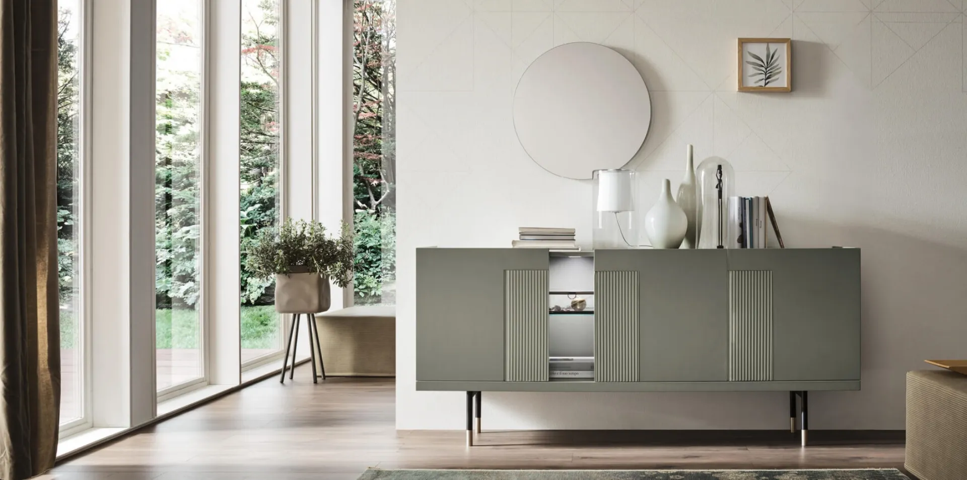 For furniture enthusiasts, this modern living room furniture model guarantees the excellence of the well-known and recognized brand: contact us for information and quotes. If you are looking for a sturdy, pleasant, and sought-after sideboard to optimize your living room, let yourself be tempted by the most beautiful modern sideboards from the best home furniture manufacturers. The Maronese Aura Glass sideboard seen here, made of matte lacquered wood, is the optimal solution, as it adds an elegant touch to the living room.