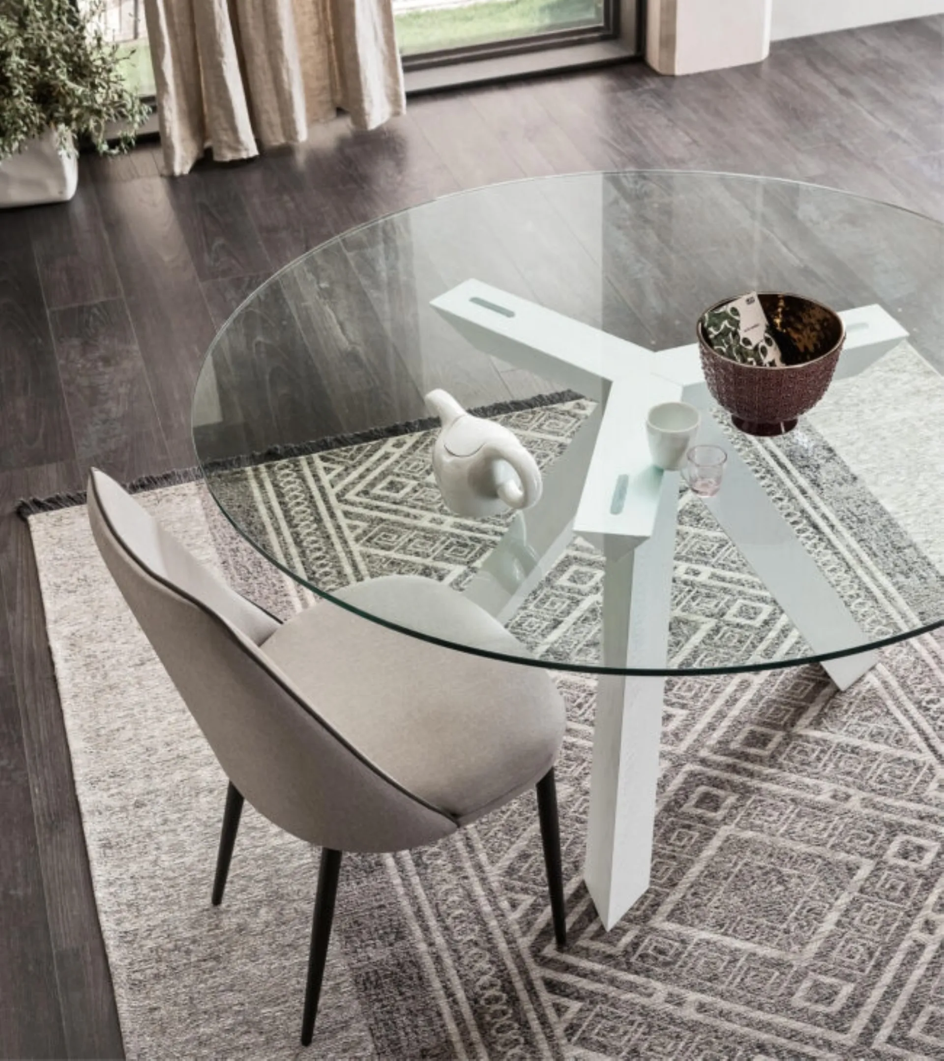Maronese round Run table: with this model you can embellish modern spaces ensuring customizable modularity and maximum customization of fixed tables. With us you will find a rich catalog of furniture and accessories in glass from the best manufacturers, ideal for completing your spaces. Contact us for information and quotes or you can view in store the other most beautiful glass dining proposals by Maronese, examples of all the quality guaranteed by the brand.