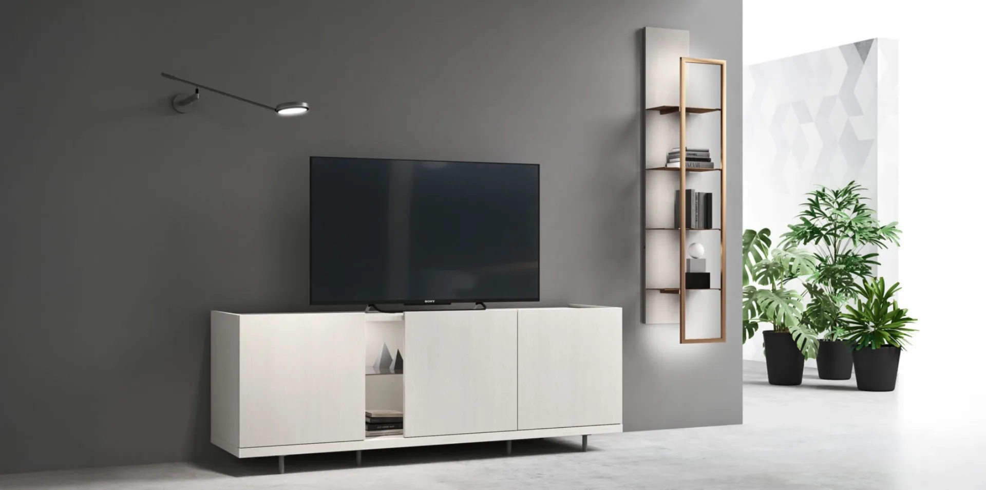 To display the television and organize various objects, a modern melamine TV stand from Maronese like this one will not disappoint you. TV stands are living room furnishings designed for various purposes: they are indispensable allies to enhance and optimize space, making it functional. In a rich series of modern TV stands produced by Maronese, the melamine model shown in the photo stands out, a mix of functionality and style. If you choose to characterize your home with this Maronese TV stand with 2380 cm legs, you will be able to make the most of the space, enriching it.