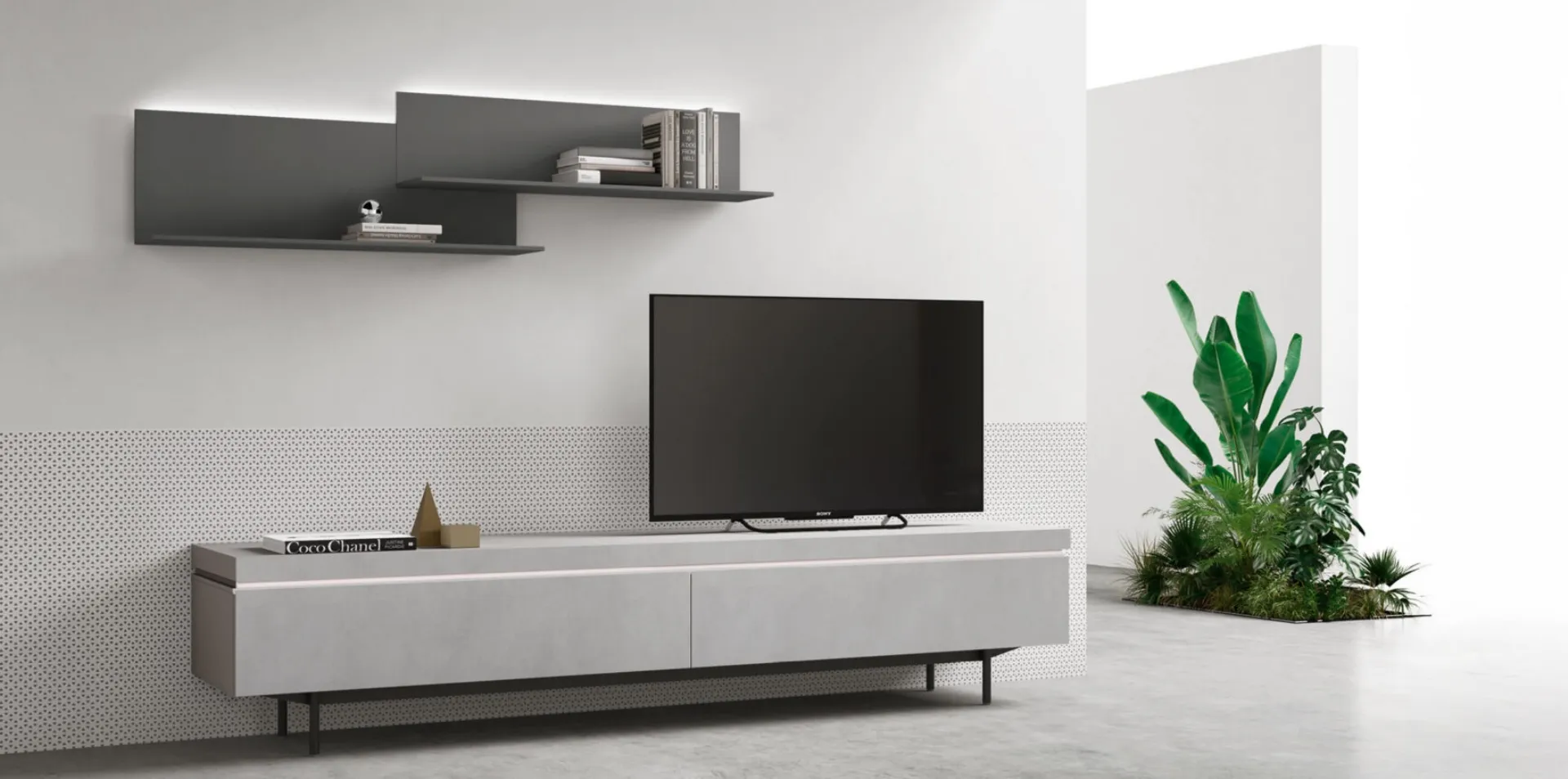 In a rich line of modern TV stands by Maronese, the model in melamine visible in the photo stands out, a mix of practicality and design. The living room should be a charming, livable, and well-furnished space, so the choice of the right type of TV stand can make a big difference. If you decide to personalize your home with this TV stand with legs sm2354 by Maronese, you can make the rooms livable and precious. TV stands are furnishings for the living room intended for various uses: they are indispensable allies to enhance and organize the space, making it livable.